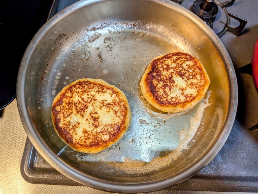 ただしバターは乳固形分が焦げやすく、フライパンの温度ムラで色が一気に進んで黒くなりがちです。安定させたい場合は、①基本は油で焼いて、最後に少量のバターで香り付け/②澄ましバター(ギー)の使用がおすすめです。